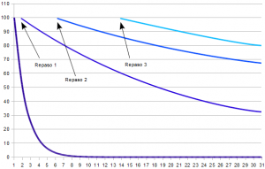 - Antes del Repaso número 3 han pasado ya dos semanas. Si no has repasado hasta entonces, apenas recordarás nada de lo estudiado. Si has repasado una sola vez (Repaso 1), es posible que llegues a recordar el 60% de los datos memorizados. Si además has repasado en una segunda ocasión (Repaso 2), recordarás entre un 80 y un 90%. Llegados a esa segunda semana desde que memorizaste la información, si vuelves a repasar en una tercera ocasión (Repaso 3), terminarás la sesión de repaso con el 100% de la información en memoria.